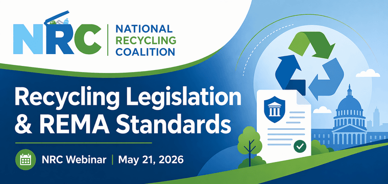 Join the National Recycling Coalition for a timely webinar focused on recycling legislation, REMA standards, and the evolving policy landscape affecting recycling professionals, local governments, state recycling organizations, businesses, and advocates across the country.